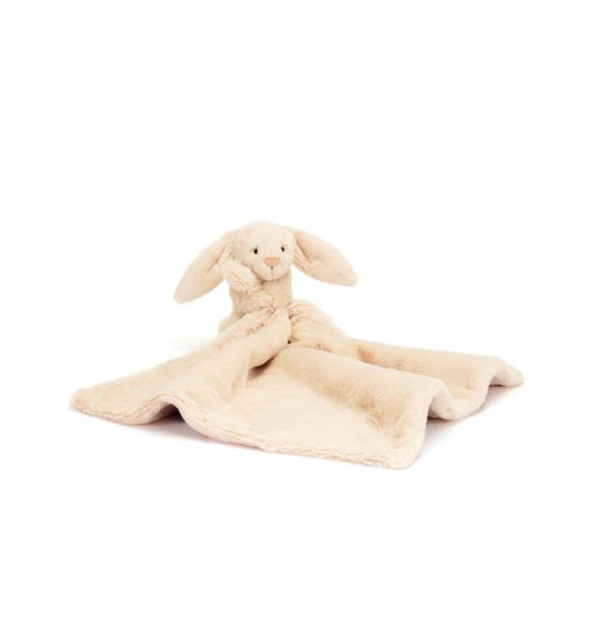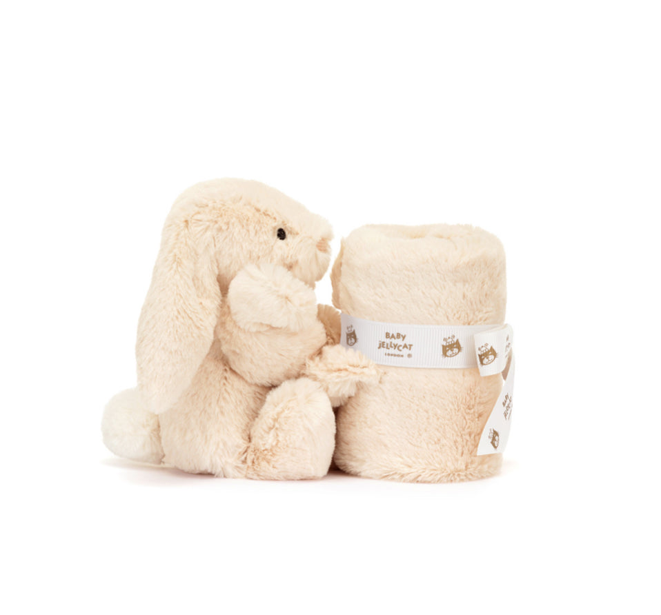 Bashful Luxe Bunny Willow Soother is irresistible to touch in our softest latte hued fur. A timeless newborn gift, this lop-eared bunny holds our finest soother: a sumptuous cloud for newborns to doze with. Crafted with stitched eyes and gold thread nose, this soothing bunny is ready to gift in a satin sheen gift box with gold foil detail and matching gift card.