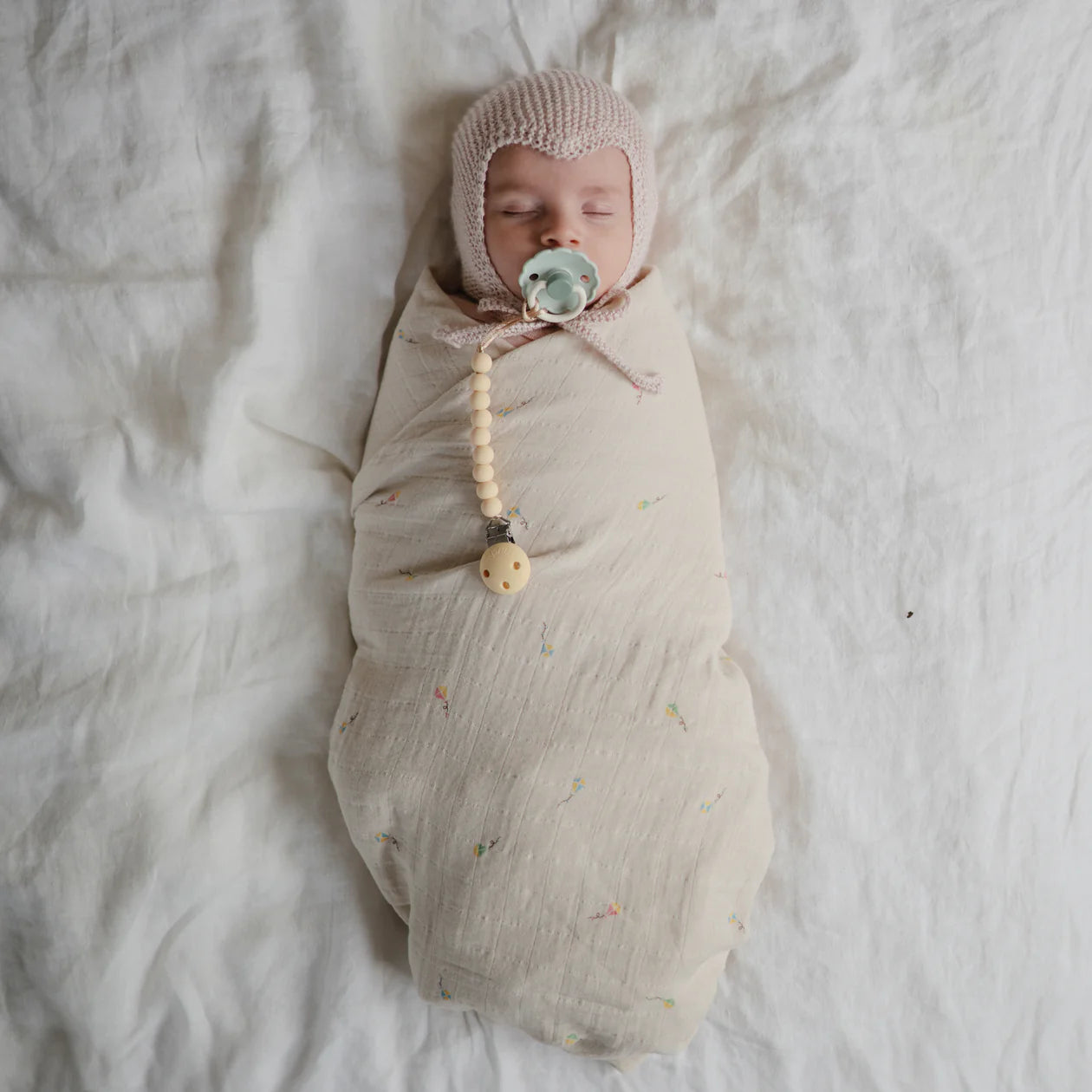 The minimalist stack of silicone beads and sturdy clasp not only look beautiful but also ensure soothing items stay within reach (and off the floor!). Easy to clean and safe for everyday use, it’s the perfect accessory for babies and parents alike.