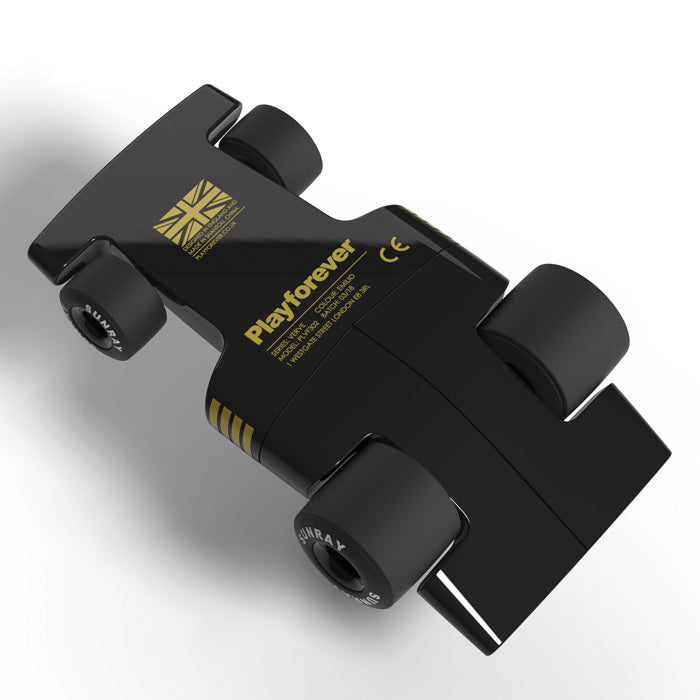 Solidly constructed from heavy duty plastic and rolling on soft rubber tyres, the Playforever Velocita range offers excitement and pleasure when 'driving' them, just like the real thing! Emilio is sleek and black with yellow racing stripes and accents and sits low and stable to handle the corners of the playroom with ease. Designed in the UK, they look just as great on display as they do at play! Formula 1 is the pinnacle of motor racing and Playforever have designed the Verve Velocita range as a tribute to the fast paced motor sport.